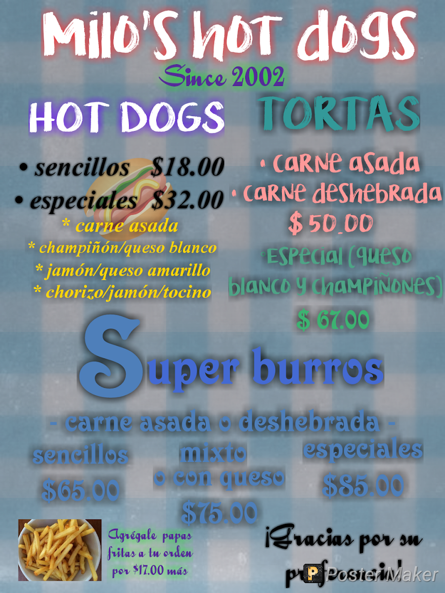 Welcome to Milo's, a culinary gem nestled in La Paz, Mexico. This vibrant restaurant specializes in a delectable array of fast food favorites, perfect for casual dining with family and friends. From their renowned hot dogs topped with bacon to mouthwatering superburros and crispy quesadillas, Milo's menu offers something for everyone.